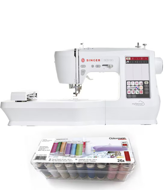Complete Your Sewing Experience with the SINGER SE9180 Sewing and Embroidery Machine & Gutermann 26 Spool Thread Box