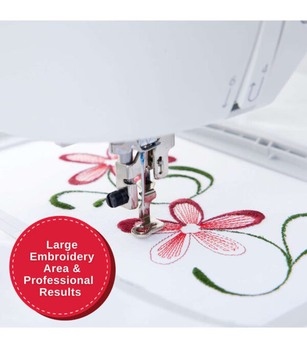 Features a 6.5″ sewing area and an included 170×100 mm embroidery hoop, making it suitable for larger projects like quilting