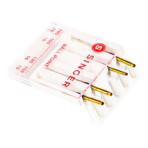 The Singer Universal Ball Point Machine Needles are just what you need when working on medium-weight knit fabrics. These ball point needles are designed to help prevent skipped stiches when working with knits and to avoid holes or runs in knit fabrics. They are compatible with most sewing machine brands including Singer, Brother, Kenmore and other quality sewing machines. Singer color-coded needles make it easy to identify the proper needle size. This pack includes four needles in size 100/16.