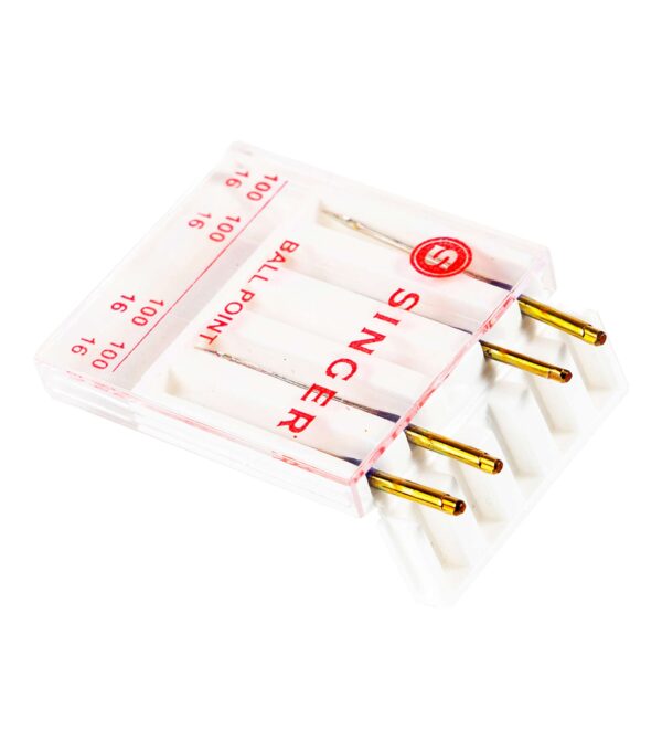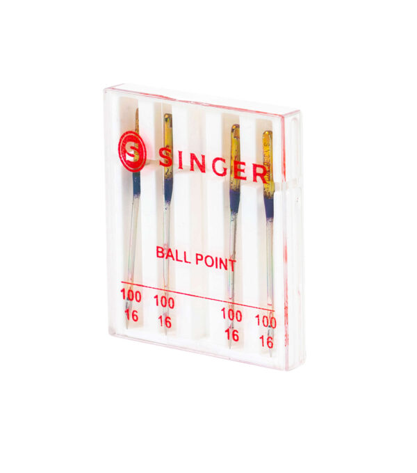 The Singer Universal Ball Point Machine Needles are just what you need when working on medium-weight knit fabrics. These ball point needles are designed to help prevent skipped stiches when working with knits and to avoid holes or runs in knit fabrics. They are compatible with most sewing machine brands including Singer, Brother, Kenmore and other quality sewing machines. Singer color-coded needles make it easy to identify the proper needle size. This pack includes four needles in size 100/16.