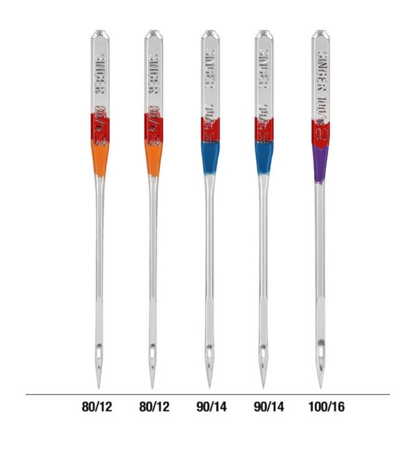 Perform multiple standard stitching projects on woven fabrics using the Singer Assorted Universal Regular Point Machine Needles. They are color-coded to their sizes, making them easy to identify and come in a convenient plastic container with size markers on the clear cover. These all-purpose regular point sewing needles are compatible with standard sewing machines. Use the orange size 80/11 needles on lightweight woven fabrics, blue size 90/14 on medium-weight woven fabrics and purple size 100/16 for heavyweight woven fabrics. This pack includes a set of five all-purpose regular point machine needles in assorted sizes.