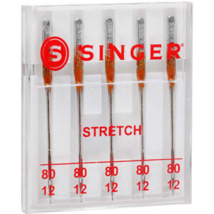 The Singer Universal Stretch Sewing Machine Needles are designed to prevent skipped stitches when working on spandex, lycra and suedes. This pack contains five size 80/11 needles that are best used on lightweight, stretch fabrics. They come in a compact case with sizing marked on the cover.