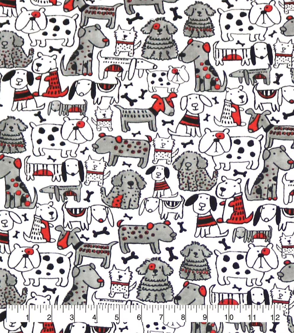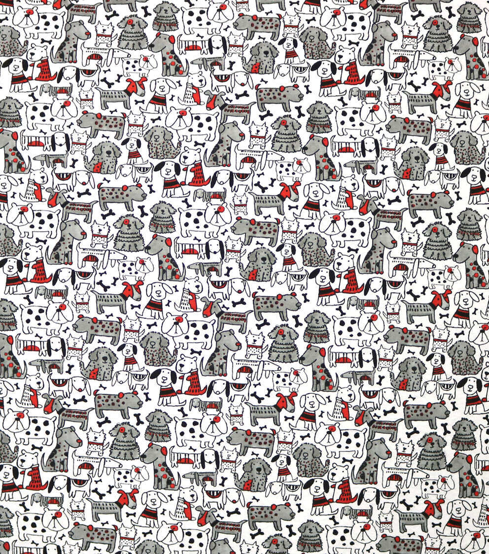 Sketched Dogs Red & Black Super Snuggle Flannel Fabric