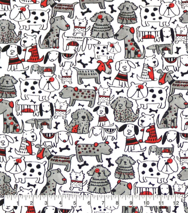 Sketched Dogs Red & Black Super Snuggle Flannel Fabric
