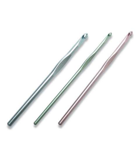 Here’s a great gift for someone just learning to crochet. The set includes 3 hooks made of Silvalume, a pastel-colored, highly polished aluminum designed for smoothness and speed.
