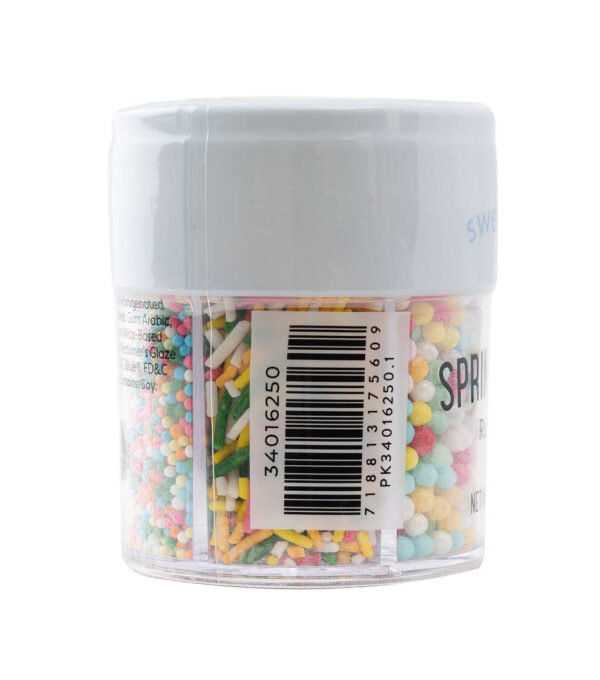 Sprinkles are an easy way to add a pop of color and texture to your treats! And SweetShop has a wide variety of pre-mixed sprinkles that complement any handmade sweet. Choose your favorites, mix and match, and get creative. Use them for cakes, cupcakes, cookies, brownies, and even pancakes and waffles! This package includes 3 oz of assorted sprinkles.