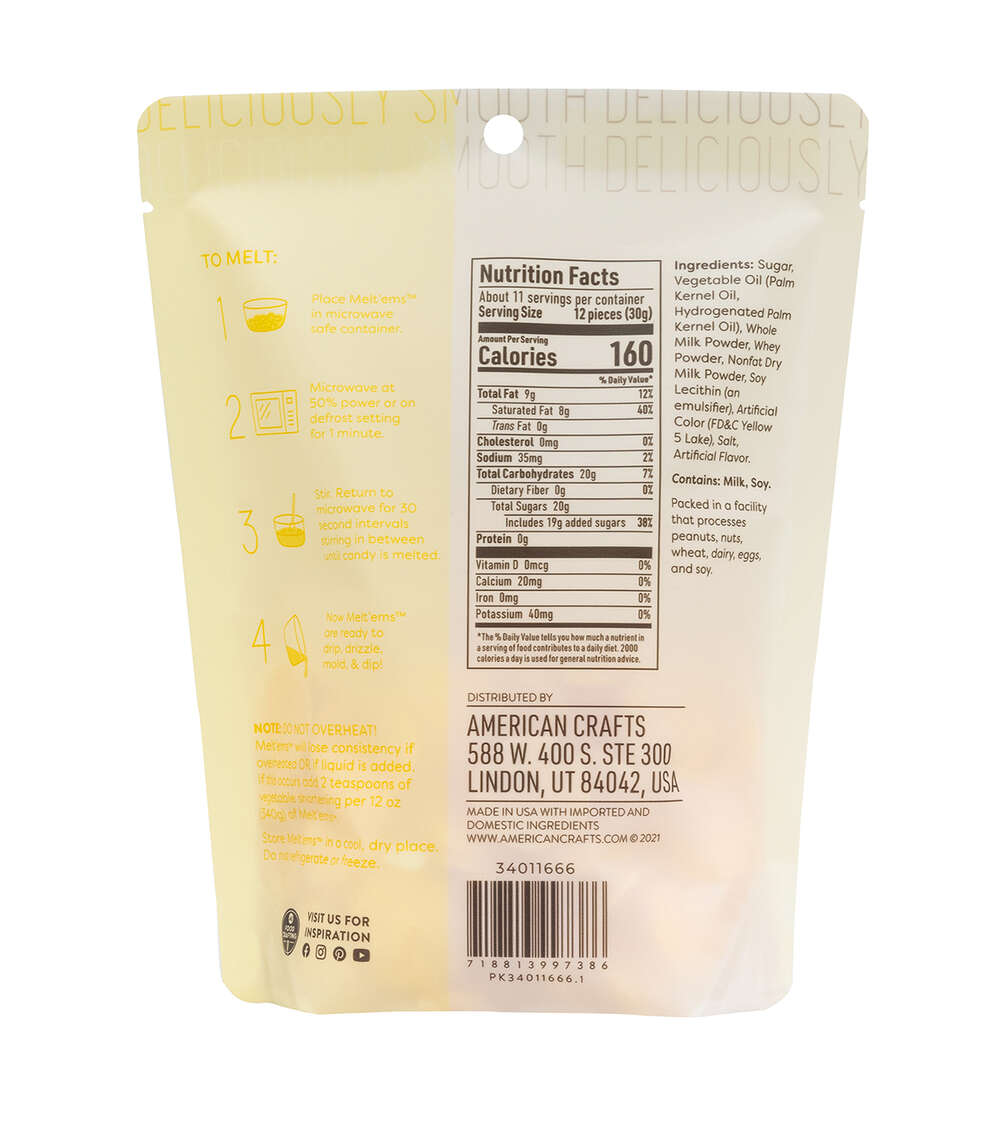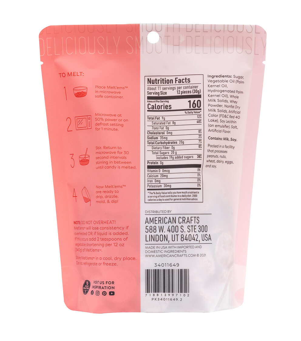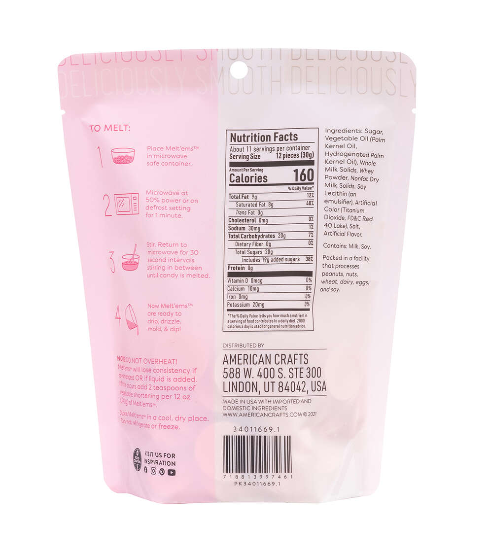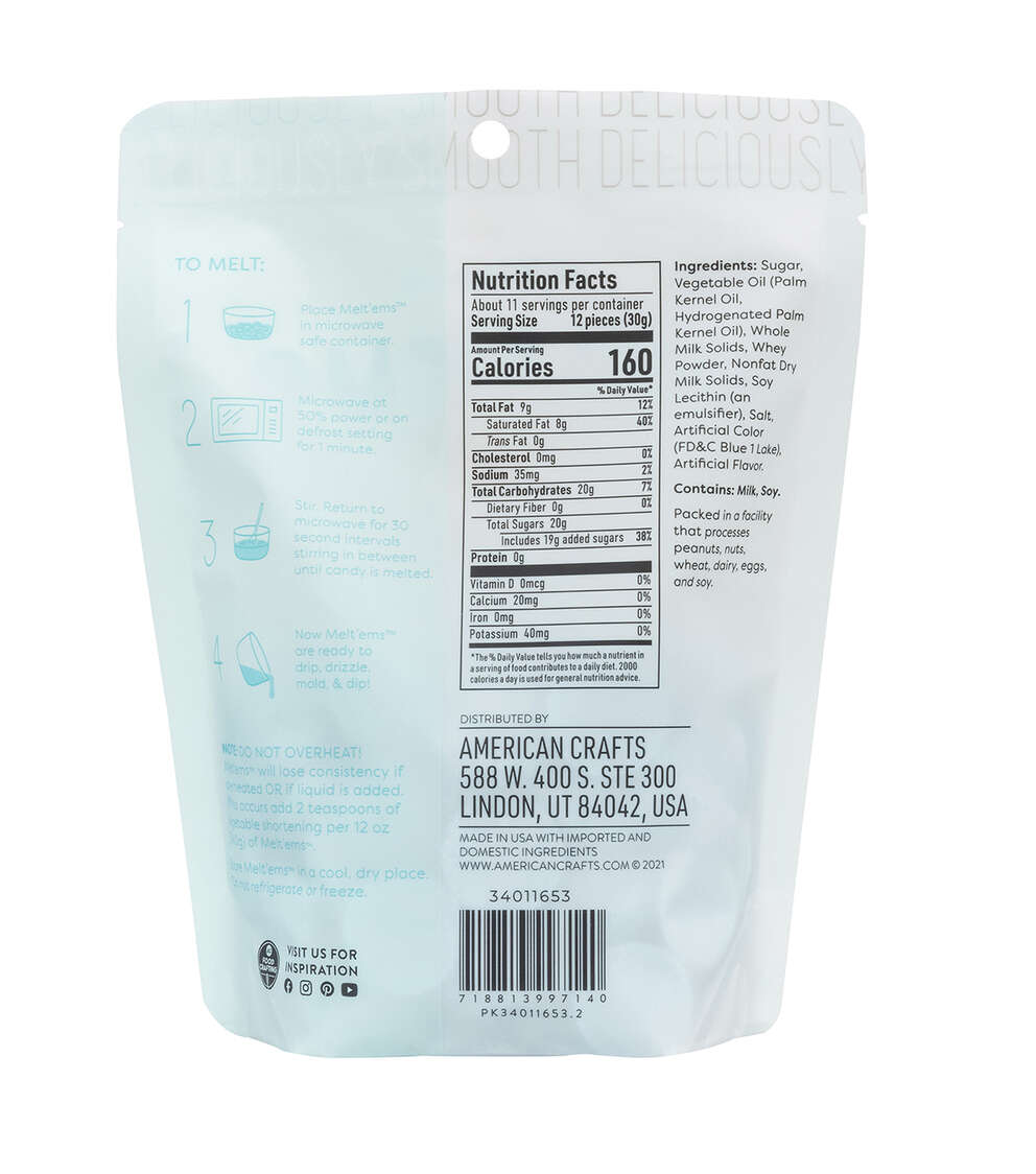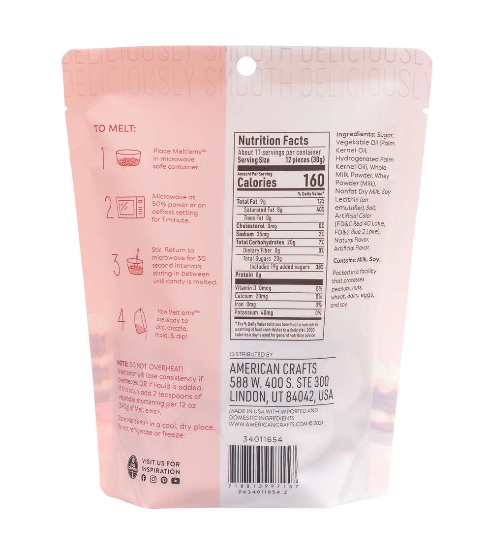 Silky, smooth, and fun to eat, Melt’ems are a must-have for all your favorite treats! Our Melt’ems are the same great taste you know and love, just under a new name. They’re perfect for adding a fun splash of color and texture to cakes, cupcakes, donuts, cookies, and so much more. This package includes 12 oz of Melt’ems.