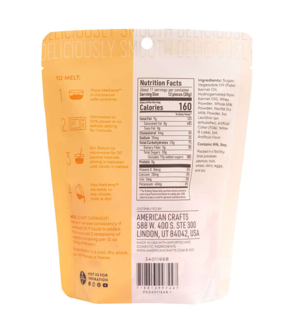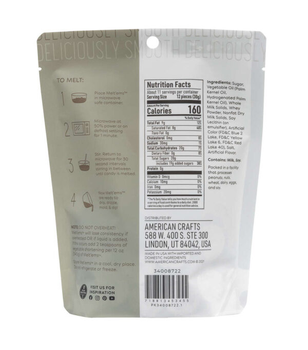 Silky, smooth, and fun to eat, Melt’ems are a must-have for all your favorite treats! Our Melt’ems are the same great taste you know and love, just under a new name. They’re perfect for adding a fun splash of color and texture to cakes, cupcakes, donuts, cookies, and so much more. This package includes 12 oz of Melt’ems.