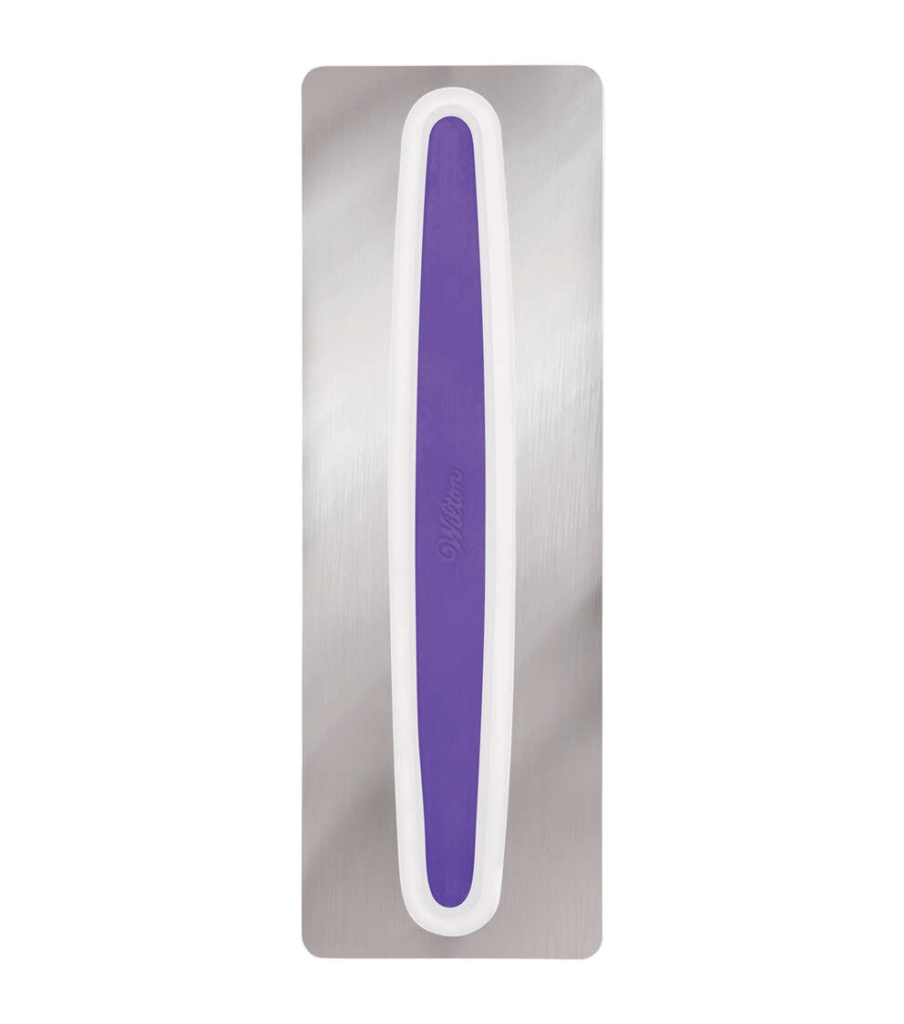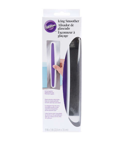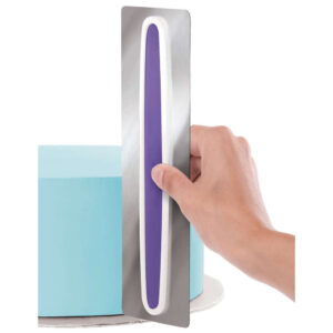 This sleek stainless steel blade helps to create perfectly smooth cake tops and sides. It’s sized specifically for standard cake heights and the flat bottom creates a simple surface to rest along the cake side. The handgrip is specifically molded for a secure grasp so it fits comfortably in your hand. Overall dimensions are 9×3 inches. Each package contains one Icing Smoother.