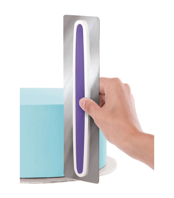 This sleek stainless steel blade helps to create perfectly smooth cake tops and sides. It’s sized specifically for standard cake heights and the flat bottom creates a simple surface to rest along the cake side. The handgrip is specifically molded for a secure grasp so it fits comfortably in your hand. Overall dimensions are 9×3 inches. Each package contains one Icing Smoother.