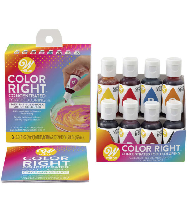 Wilton takes the guesswork out of coloring. Mix the color you want every time with color right ultra-concentrated base colors and precise Quick Count color formulas. Unlike traditional food coloring, the Wilton color right performance color system allows you to easily coordinate the color of your sweet treats to match your unique party decor, theme or special occasion.