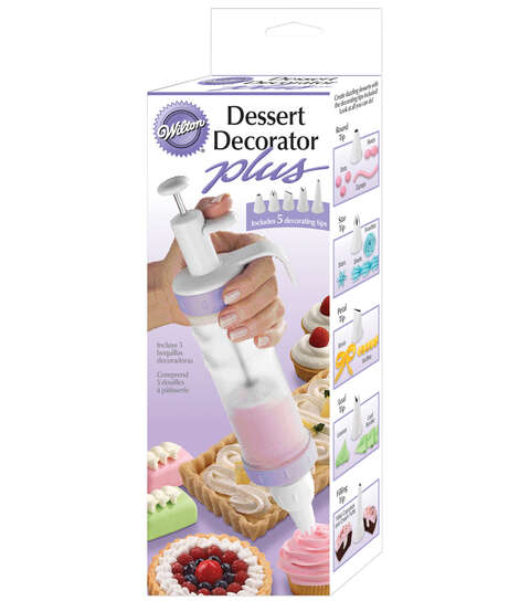 Wilton’s Dessert Decorator Plus is an easy-to-use tool to create beautifully decorated desserts. One hand can do it all – from elegant shells, stars and leaves to pretty bows and flowers.