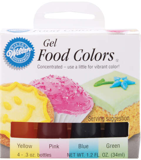 Wilton Gel Food Coloring Set is great for batter; icings; frozen desserts; whipped cream and more. Wilton’s Gel Food Coloring is ultra concentrated so you only need a little to achieve vibrant color!