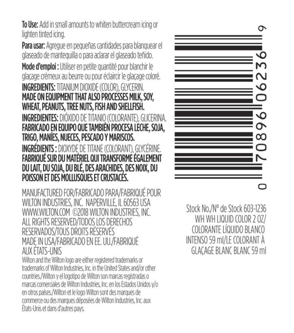Need your icing a little whiter? Look no further— this white-white icing color brightens your buttercream and lightens your colored icing with just a few drops. 2 ounces.